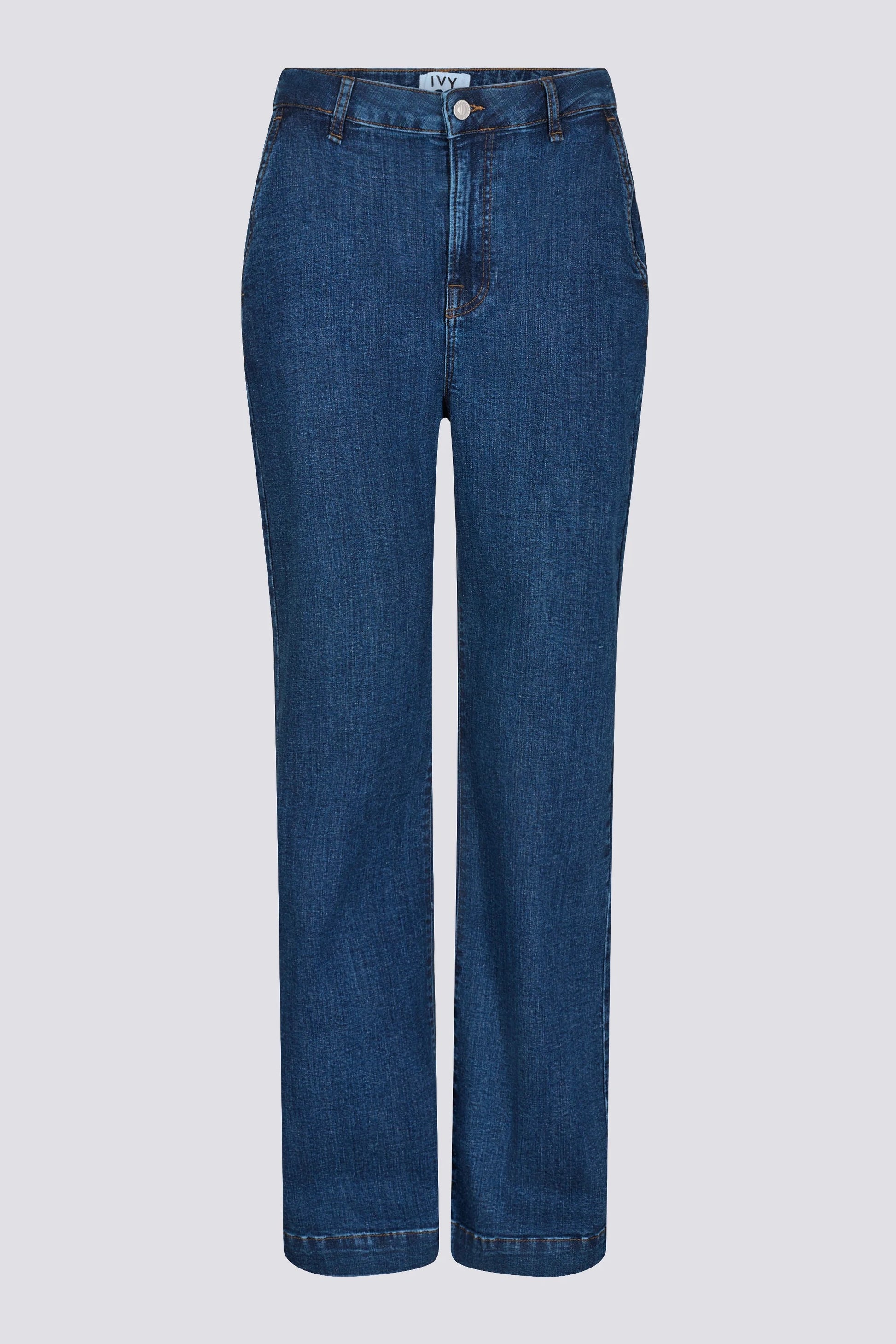 Våra Brooke-jeansmodell har en lös passform, hög midja och raka, vida ben.