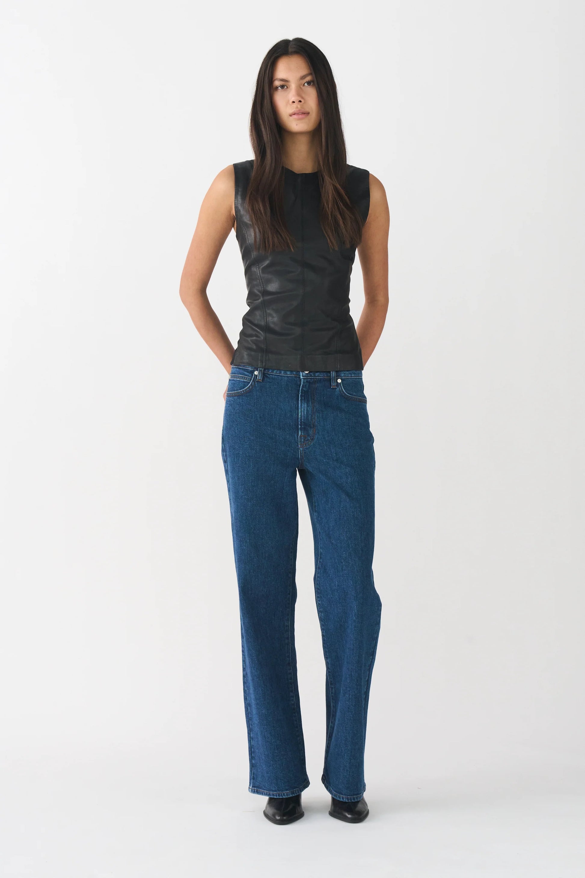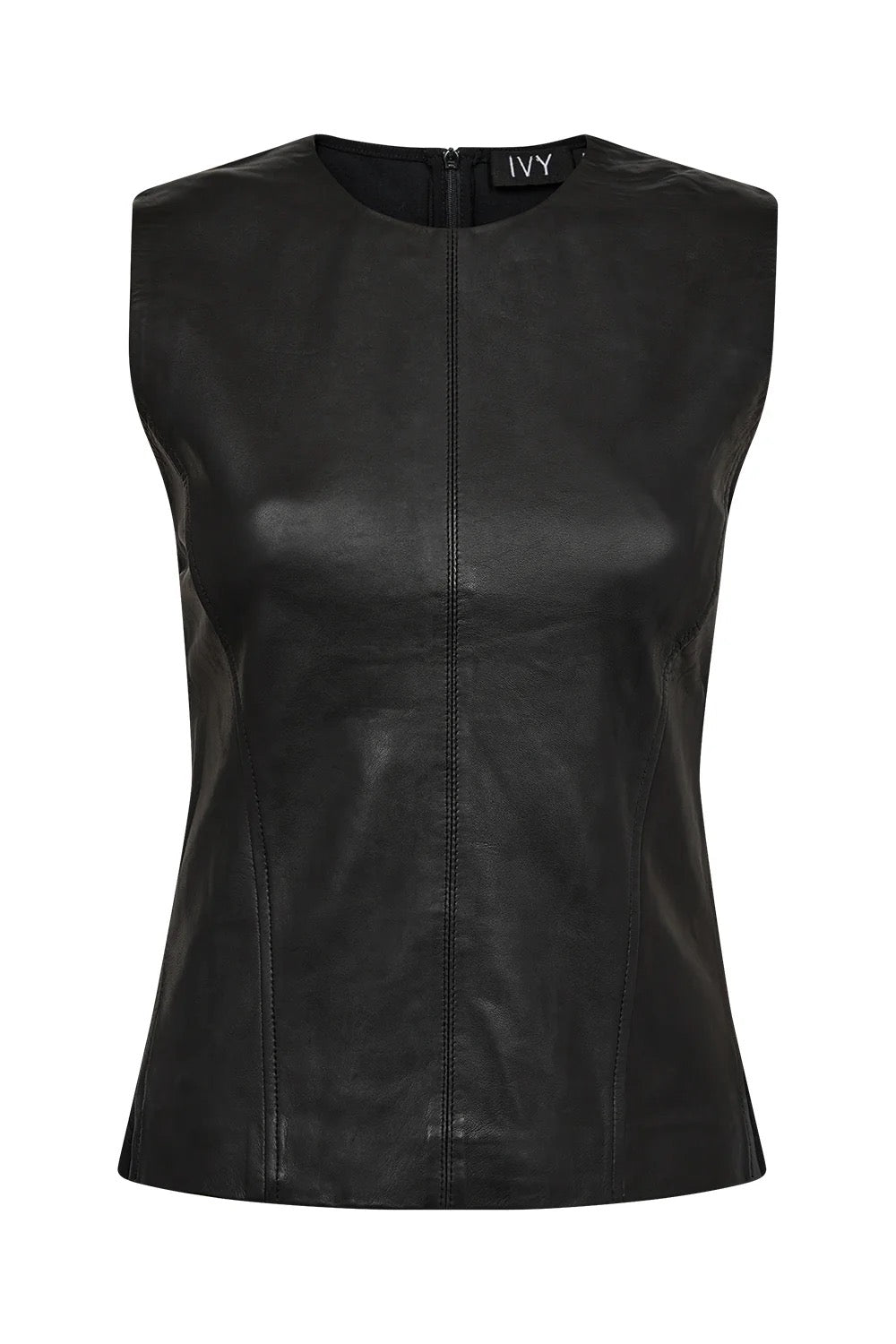 Beskrivning Vår Kylie Mix-topp är ett elegant garderobsplagg med en touch av stil. Tillverkad av slätt, högkvalitativt läder har denna ärmlösa topp en elegant, strukturerad silhuett som ger sofistikering till vilken look som helst. Den minimalistiska designen kompletteras av en dold dragkedja bak för en sömlös finish.