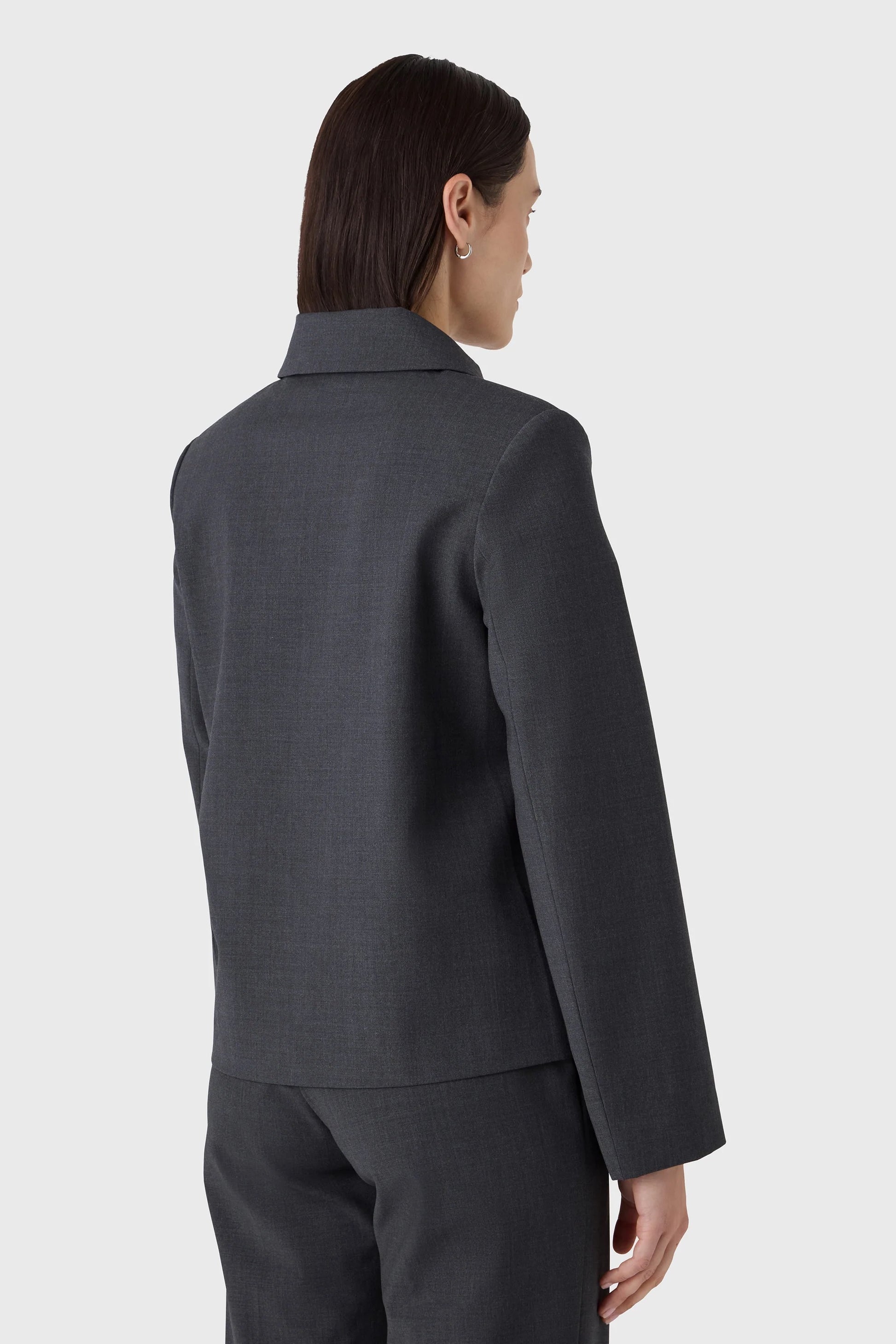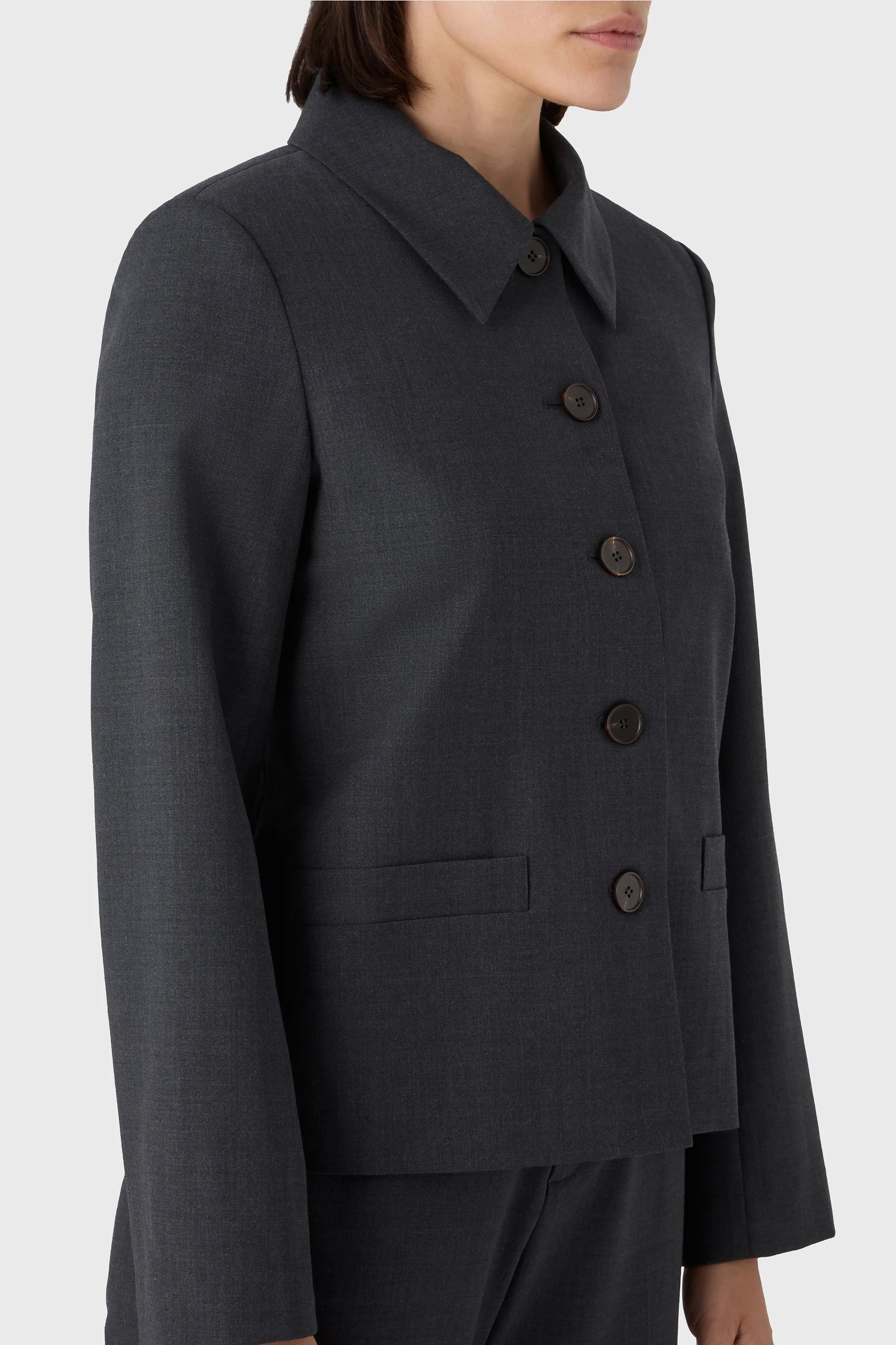 Broco-kavajen är en kort blazer i stretchig ull med skjortkrage, knappar framtill och diskreta fickor. Den raka skärningen slutar vid höften och ger ett stilrent uttryck – lika fin till denim som till vida byxor.