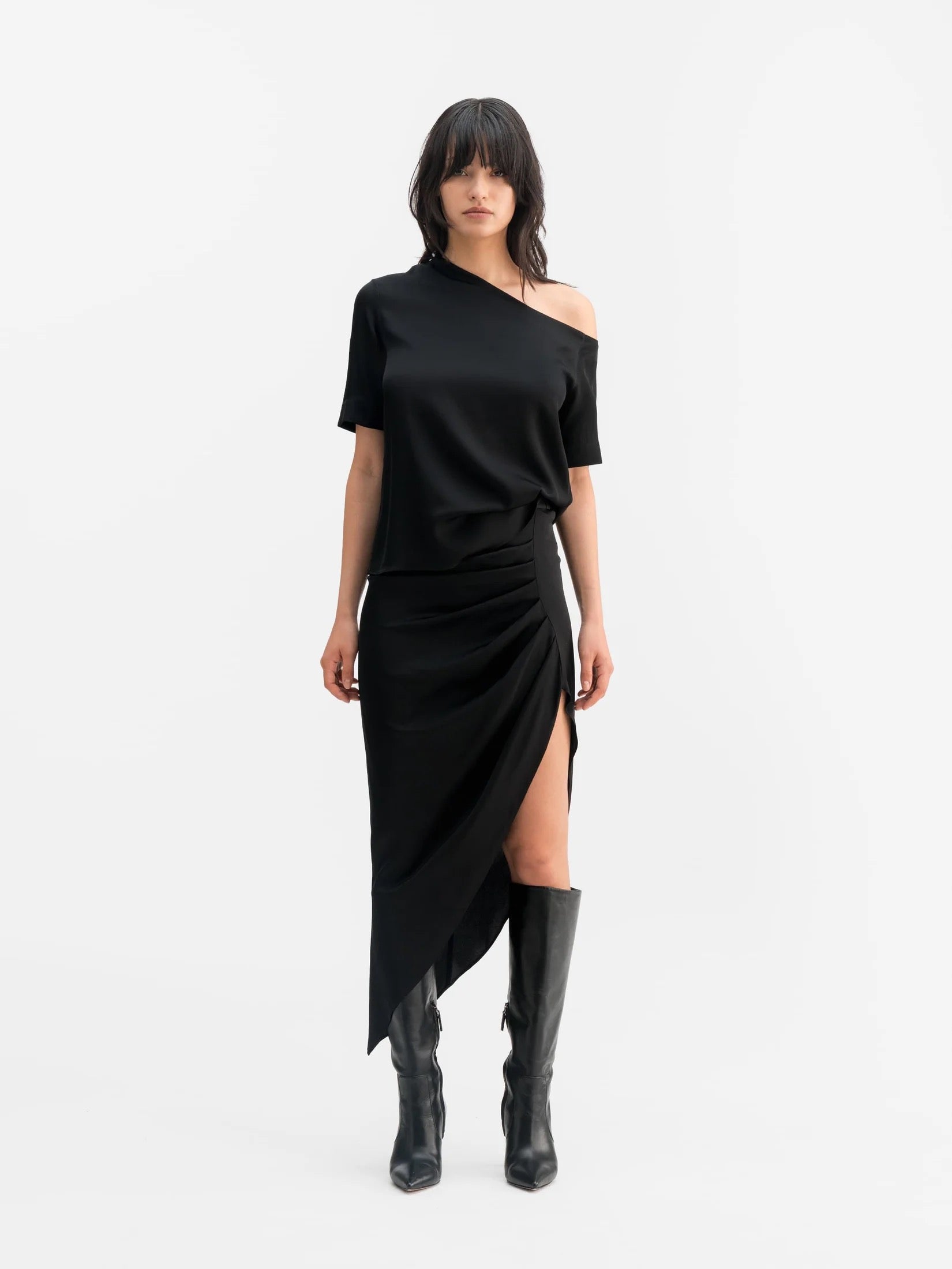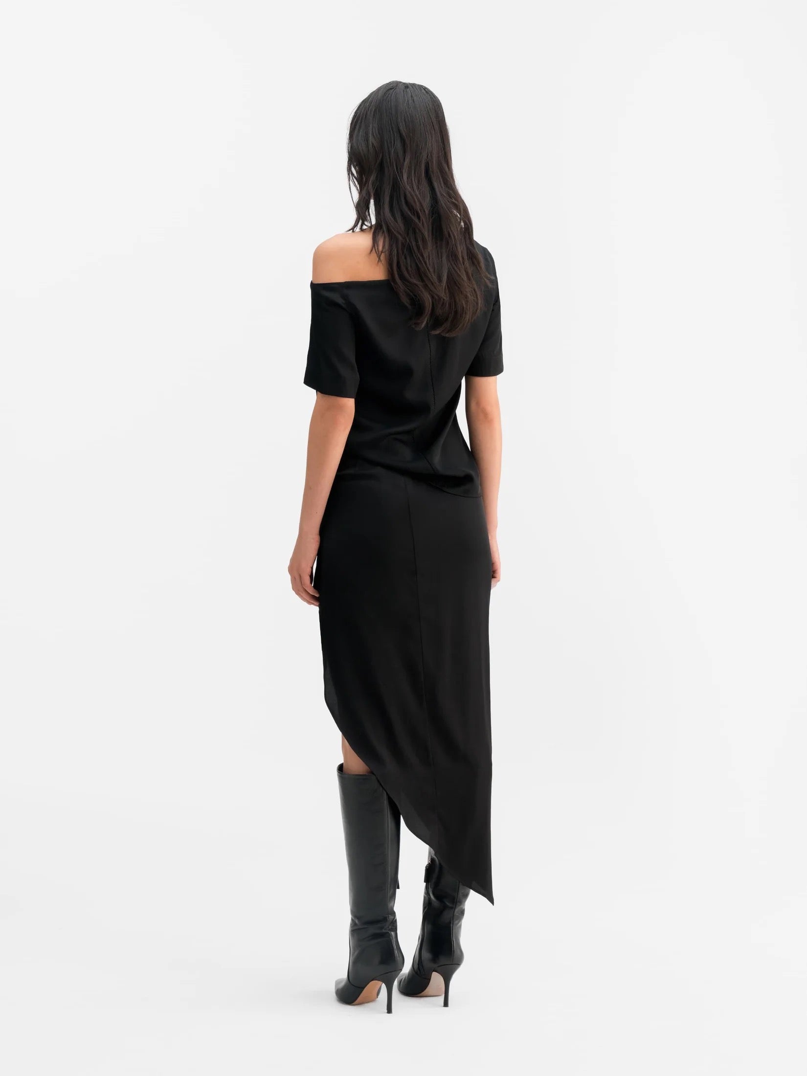 Denna kortärmade blus är tillverkad i en blandning av siden och stretch och har en off-shoulder-skärning och en broderisöm längs ryggraden. Georgette-tyget faller vackert, vilket gör den idealisk för kvällar ute.