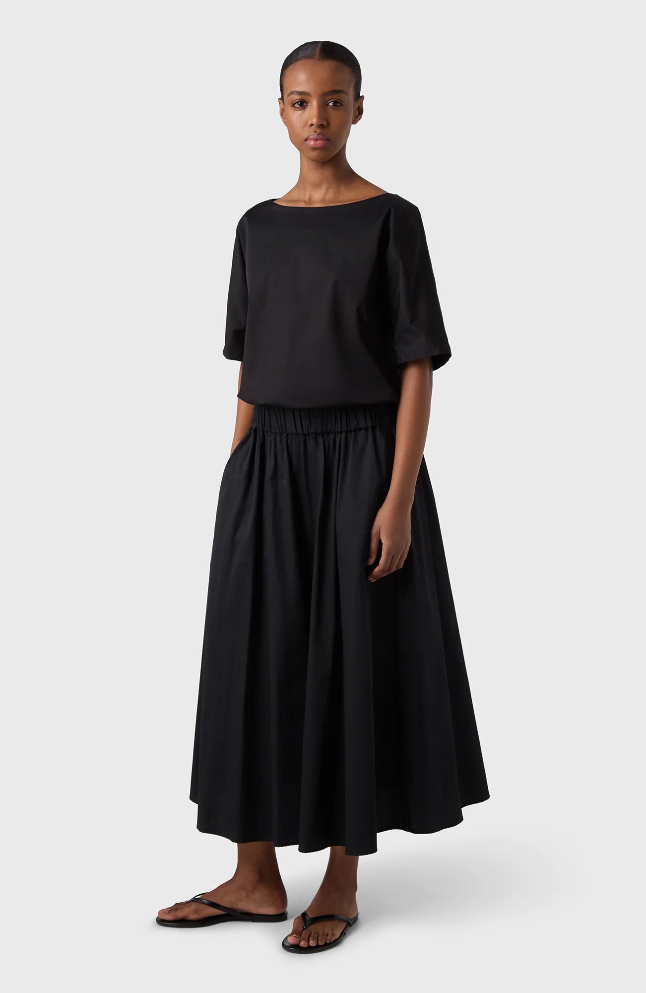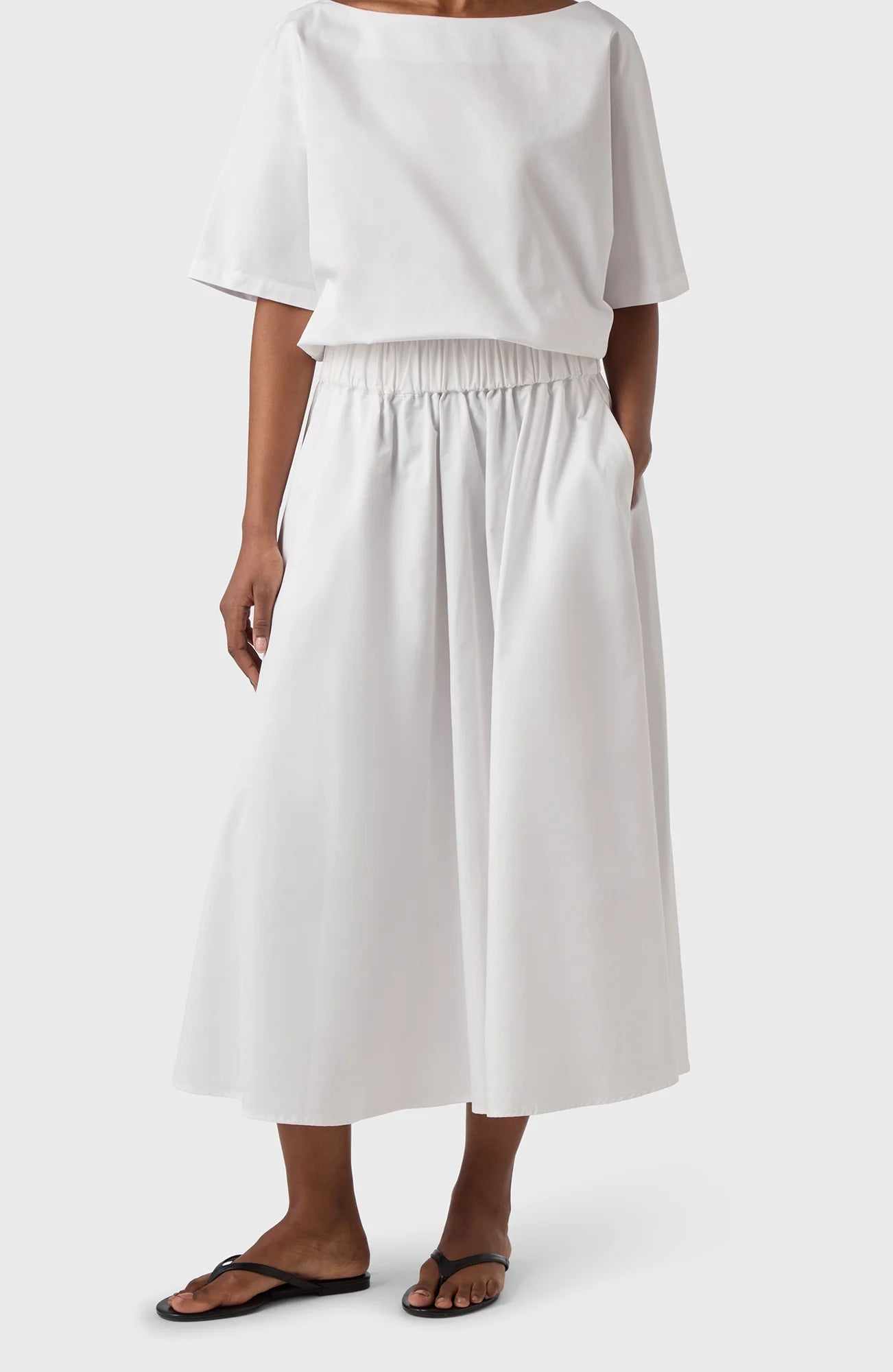 Sommarens självklara val – en vid kjol med en smickrande, hög resårmidja. Bär den ensam med baddräkt, en t-shirt eller som ett set med Ortiz-toppen.