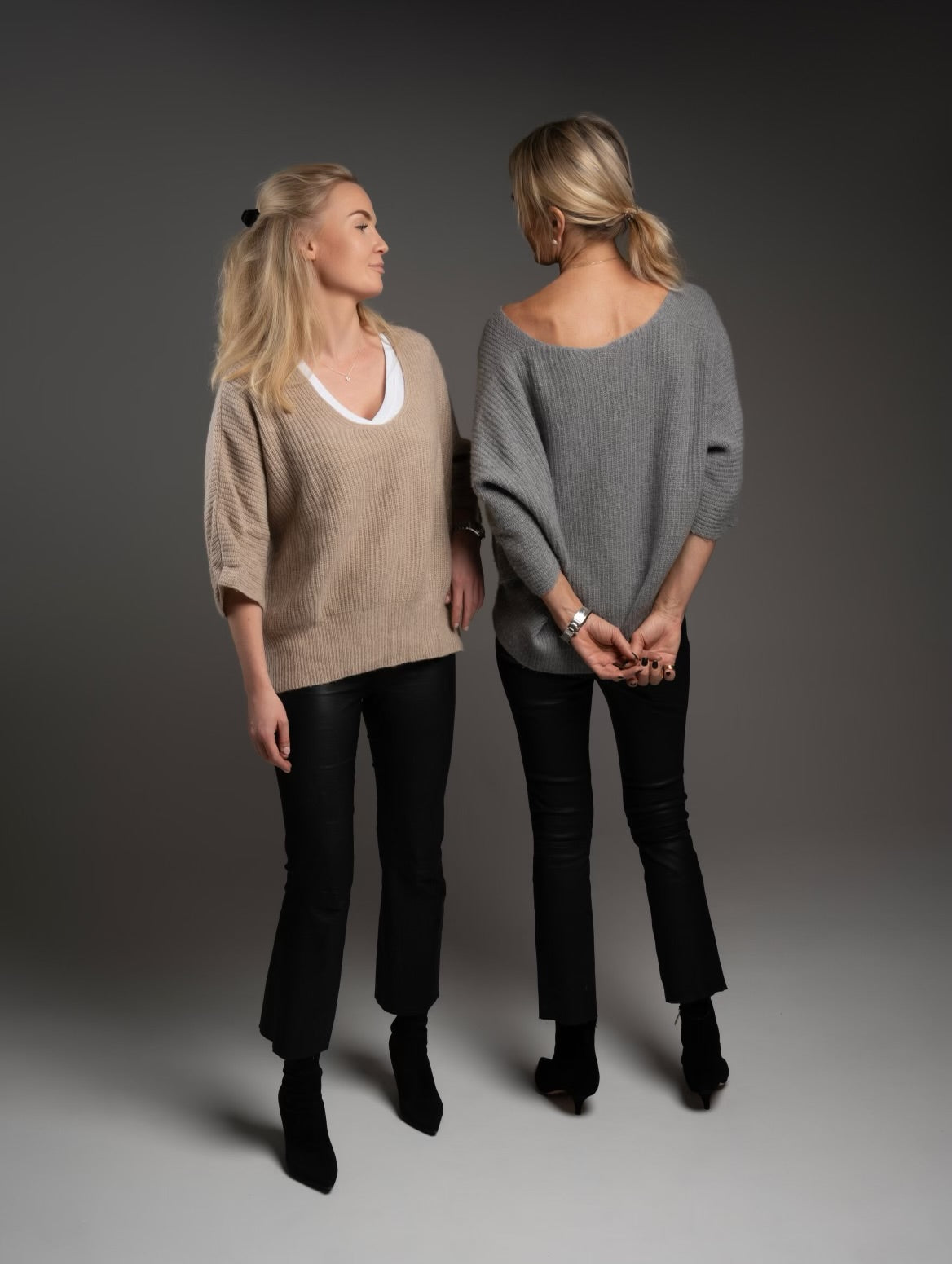 Oversized V-ringad ribbstickad tröja i 100% cashmere.