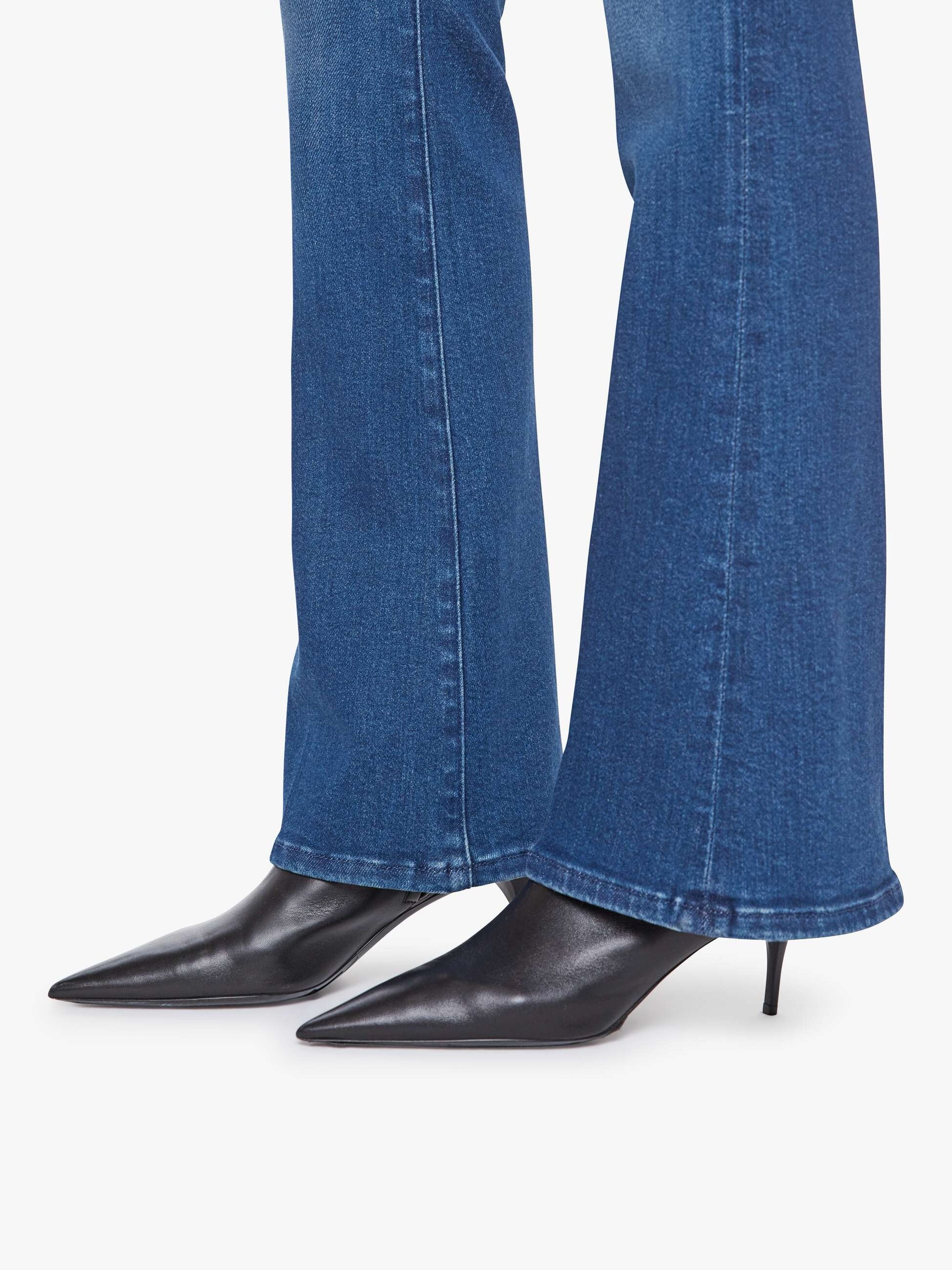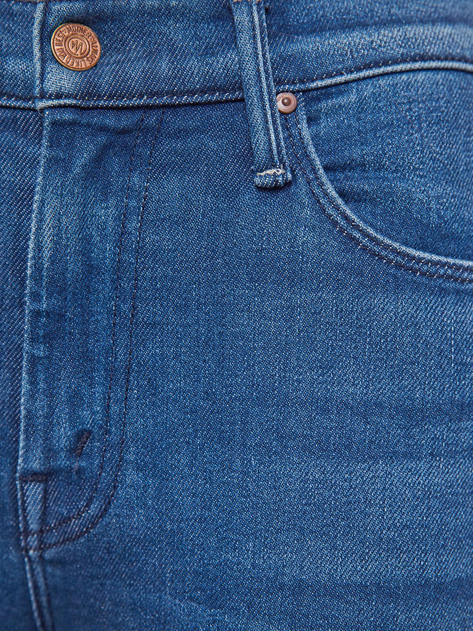 Dessa favorit-utsvängda jeans har en medelhög midja med en innerbenslängd på 79 cm och en slät fåll. Layover är tillverkade av stretchig denim och har en mellanblå tvätt med slingrande och bleknade detaljer.