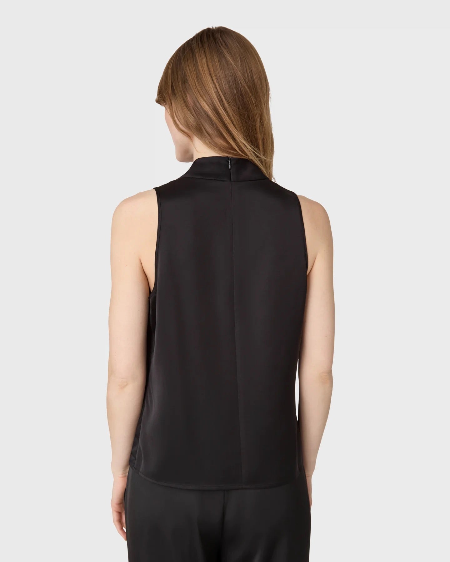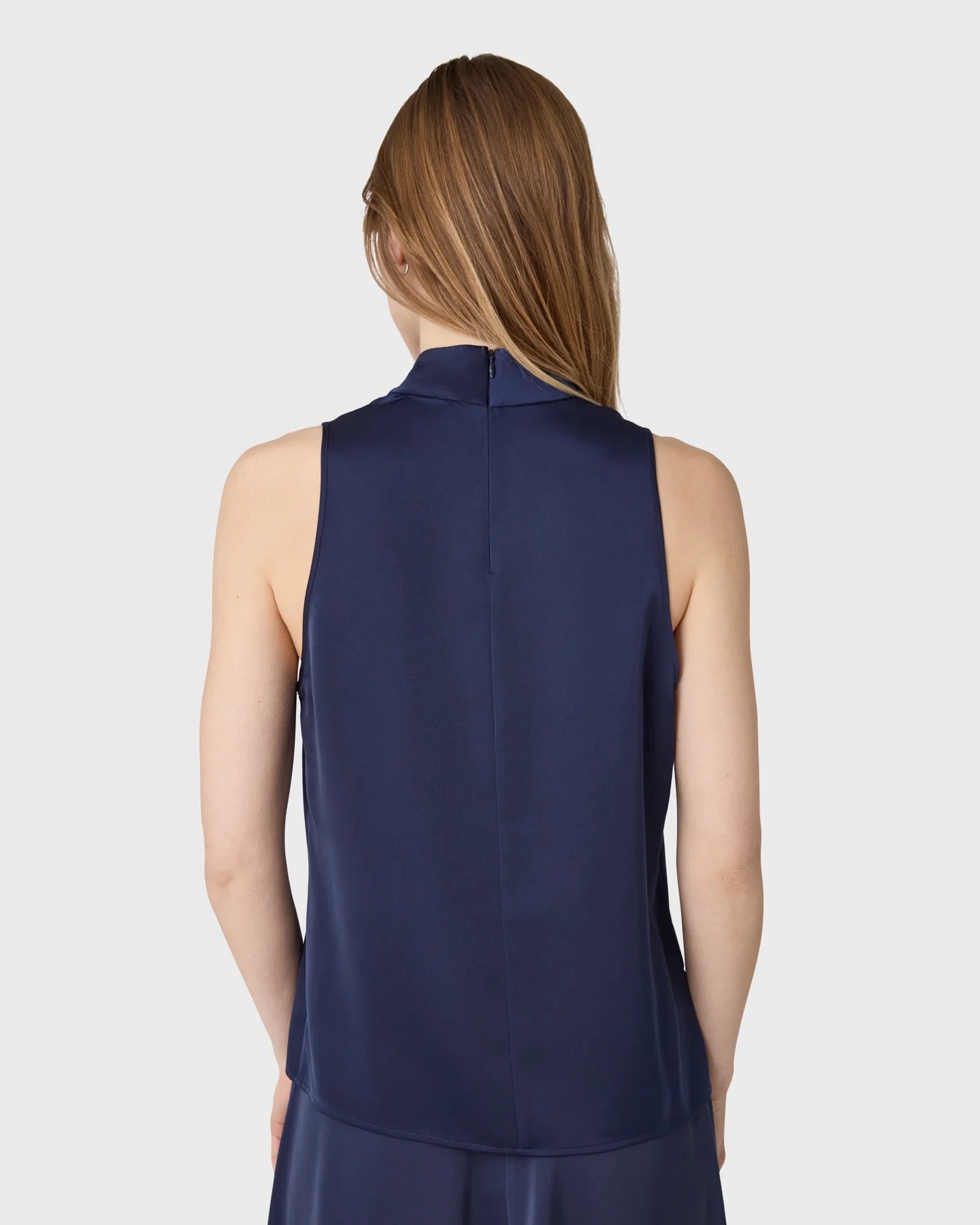 The Zeta topp är en ärmlös halternecktopp med ståkrage i satin stretch.